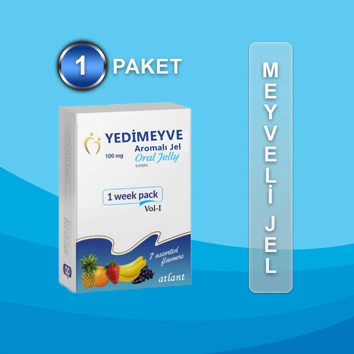 100 mg'lık jölenin bir paketinde çilek, muz, elma, mango, ananas, vanilya, portakal ve diğerleri dahil olmak üzere farklı hoş aromalara sahip yedi tat bulunur.