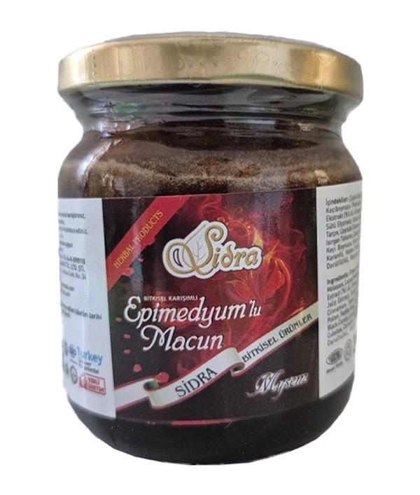 Sidra Epimedyumlu Macun, epimedyum başta olmak üzere çeşitli bitkisel özler, doğal bal ve destekleyici bileşenler içeren bir üründür. 240 gramlık ambalajı, düzenli kullanım için yeterli miktar sunar. Ürün, bitkisel takviye kategorisinde yer almaktadır.